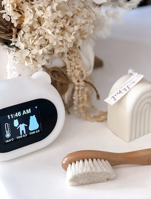 Overnight temperature prediction using the in-built thermometer combined with local weather information makes Sleep Like Goldilocks the smartest nursery thermometer in the world. Dress baby once for sleep knowing they'll spend the whole night not too hot, not too cold, but just right.